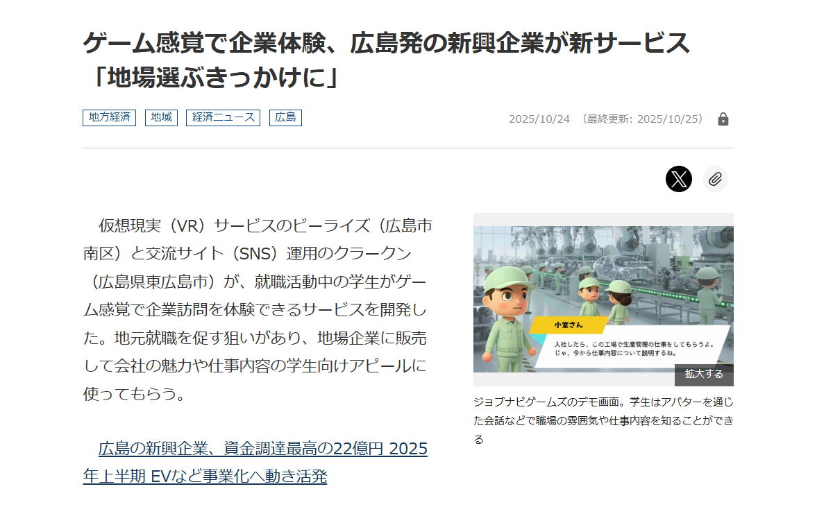 2025年10月25日(土)中国新聞朝刊にて、Clark’n様との取り組み「ジョブナビゲームズ」について取材いただきました!(中国新聞デジタルは2025年10月24日公開)