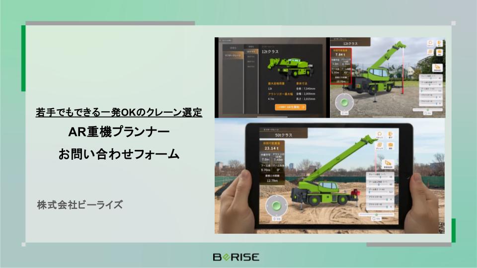 AR重機プランナーサービス資料 クレーン選定から関係省庁への申請書の作成までカバーした、現場でご活用いただけるアプリです。 経験に依存しがちな業務をARで再現し、若手でも簡単・正確にクレーン選定ができるようサポート。 iPadひとつで、安全・確実なクレーン選定と効率的な現場管理を実現します。資料をダウンロード -