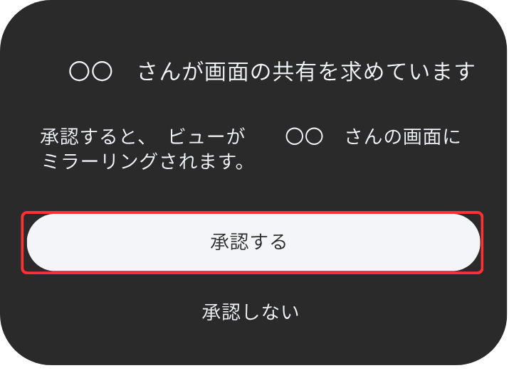 - ミラーリング対象に選ばれたQuestデバイス側に「承認」を求めるウィンドウが表示されます。