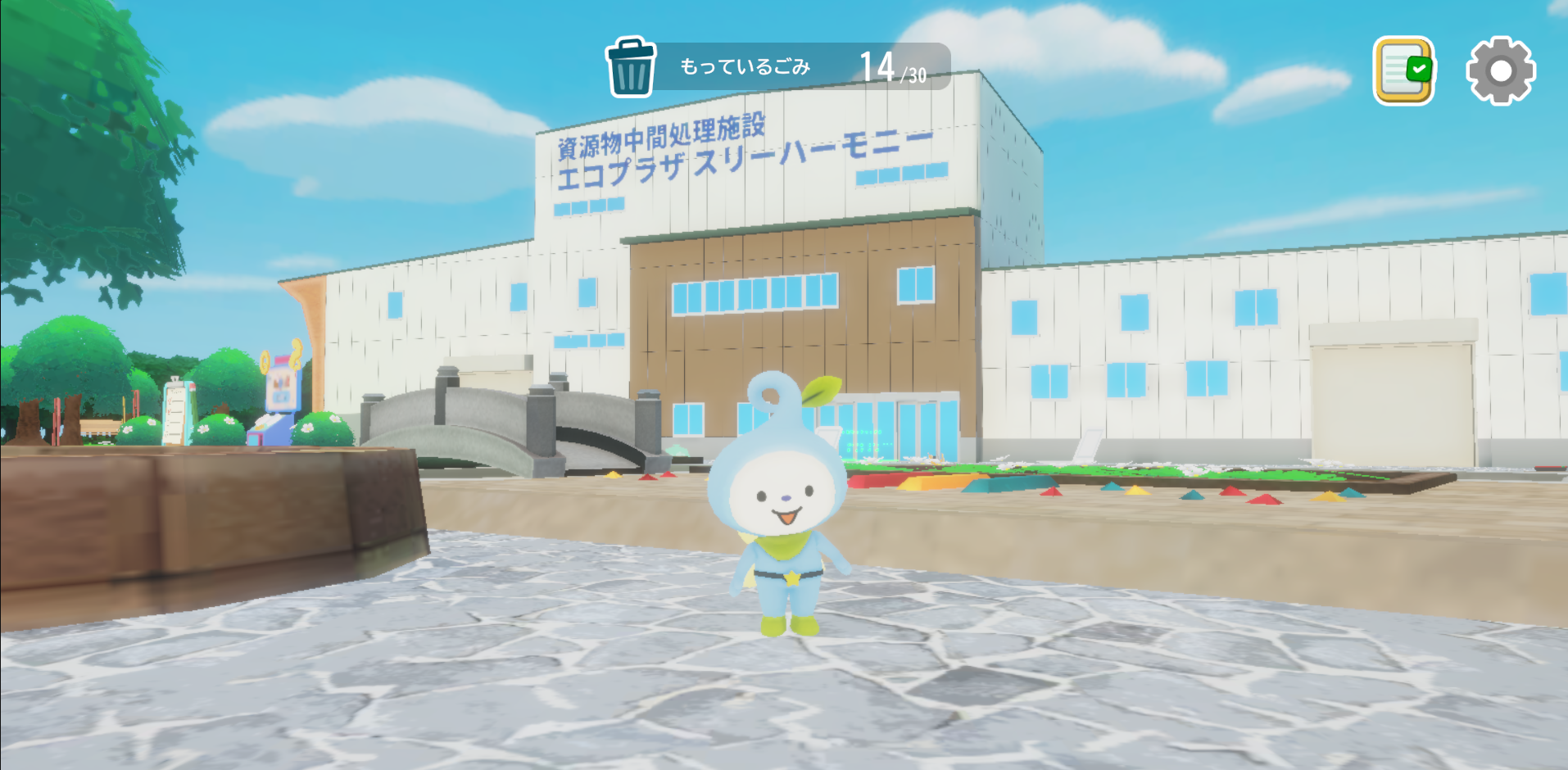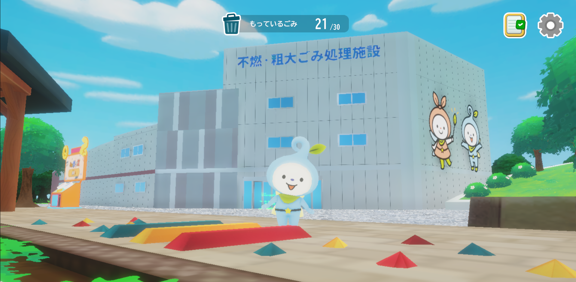 ミッションをクリアするとバーチャルごみ処理施設のワールドが発展していきます。