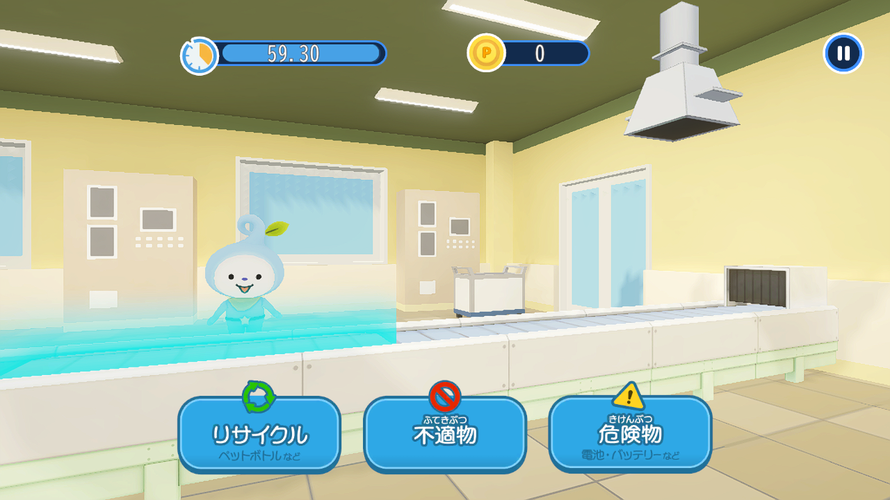 リサイクルできるものとできないもの、危険物を素早く仕分けられるか挑戦できます。