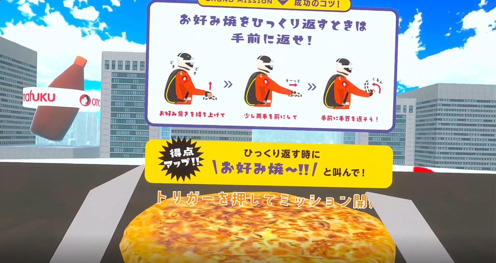 架空のテッパンシティで「空中に浮かぶ食材を集め、お好み焼をつくる」お好み焼士のミッションに挑戦